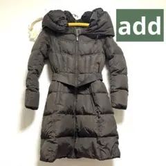 ADD アデデ フード付きブラックダウンジャケット ロング