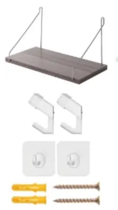 木製 ウォールシェルフ 杉材 ハンドメイド 鍵掛フック付き ダークウォルナット