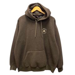 フリース素材のダークグレーのフード付きジップアップジャケット、CONVERSEロゴ付き。