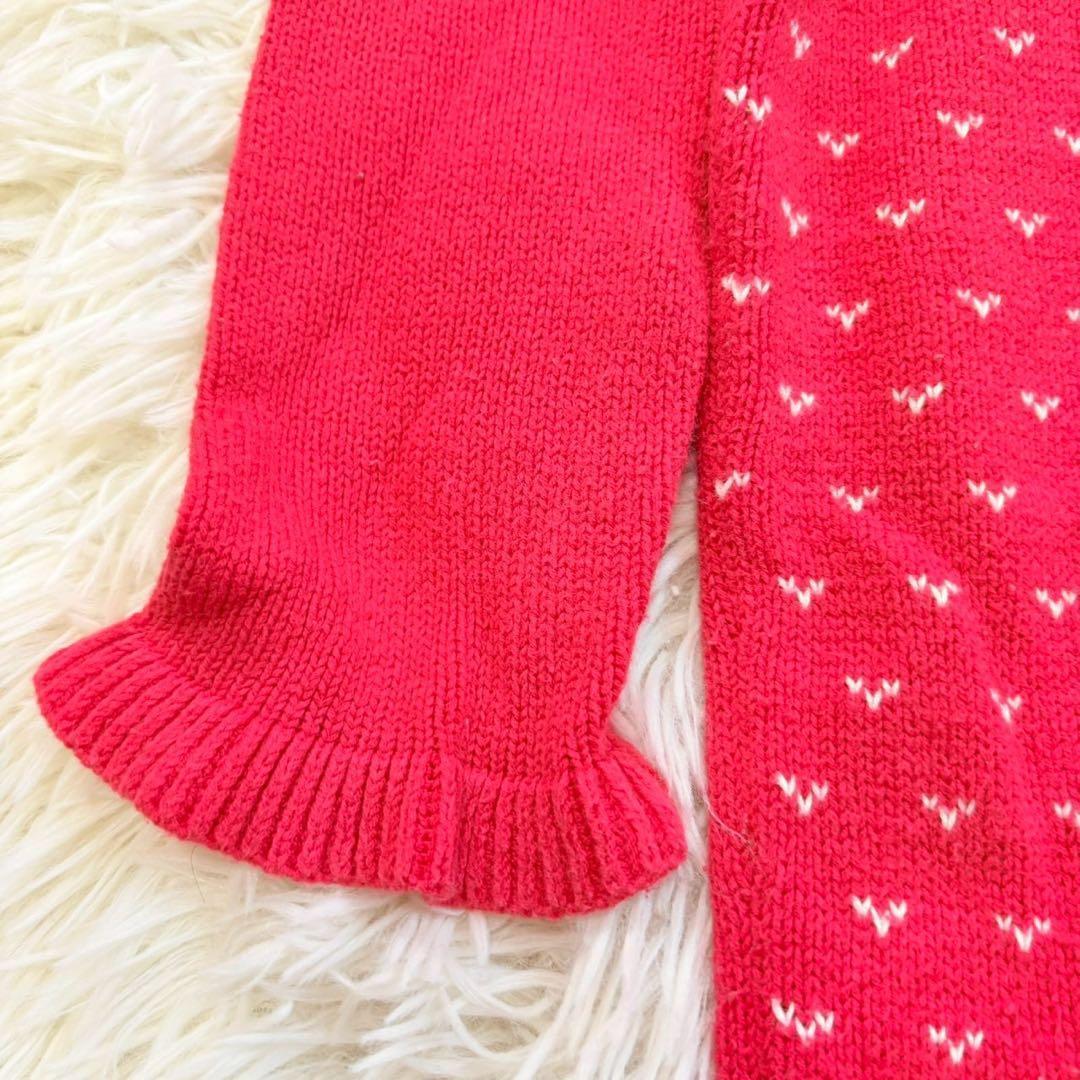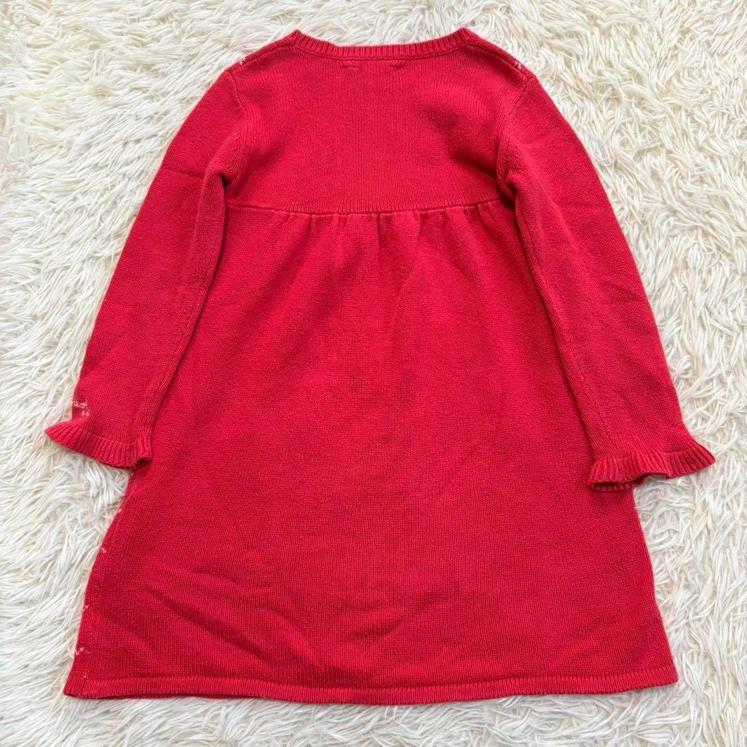 オシュコシュ キッズ120 長袖フリルニットワンピース 赤 クリスマス 雪柄