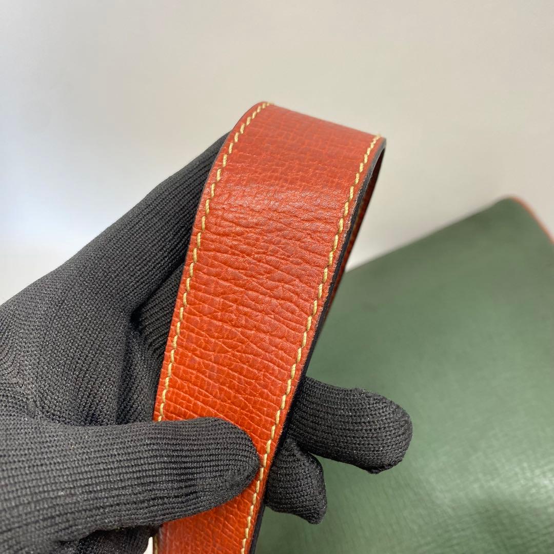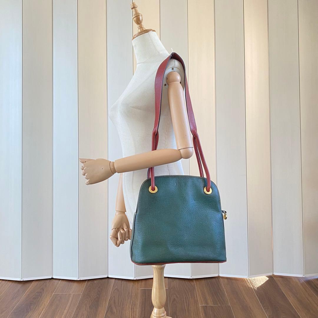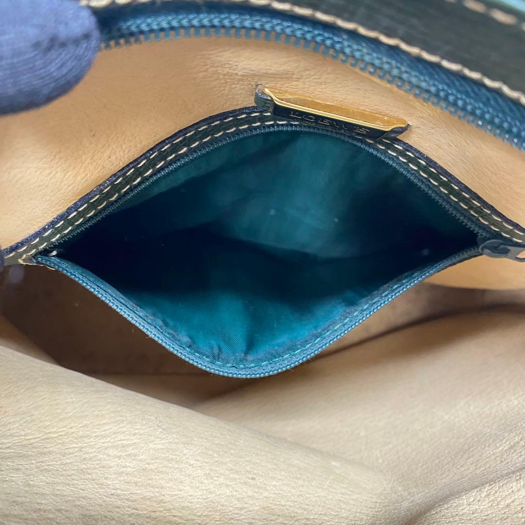 ロエベ グリーンショルダーバッグ 型押しレザー ビンテージ