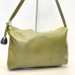 ■ ロエベ グリーンショルダーバッグ 型押しレザー ビンテージ loewe