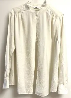 【ユニクロ】 花柄長袖シャツ Sサイズ UNIQLO オフィスシャツ 白