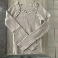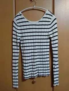 赤系のボーダーデザイン、アクリル100%の長袖ニット。