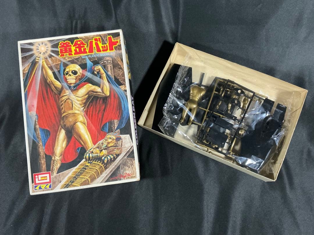 イマイ製の黄金バットプラスチックモデルキット、特徴的なスカルデザインが魅力。