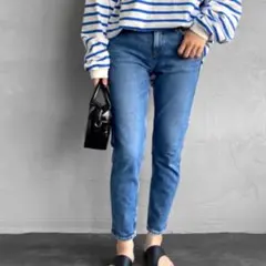 細めのストレートシルエットが、脚の肉感を捨わず美脚に導く今旬な一本。柔らかくはき心地のよいストレッチ入り