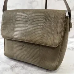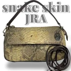 黒のヘビ革製ショルダーバッグ、外ポケット付きで収納力抜群です。