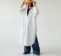 patterntorso ネイビー花柄シャツワンピース ゆったり仕様 Fサイズ