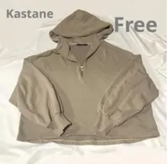 オリーブ色のKastane製カジュアルパーカー、リボン付きオープンフロントデザイン。