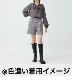 美品 GU ジーユー ラッフルカラーブラウス フリル 長袖 オフホワイト 白 s
