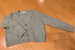グレーのニットセーター、クマの顔とWのロゴデザイン。