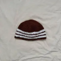 ストライプデザインのニット帽、カジュアルなスタイルに最適。