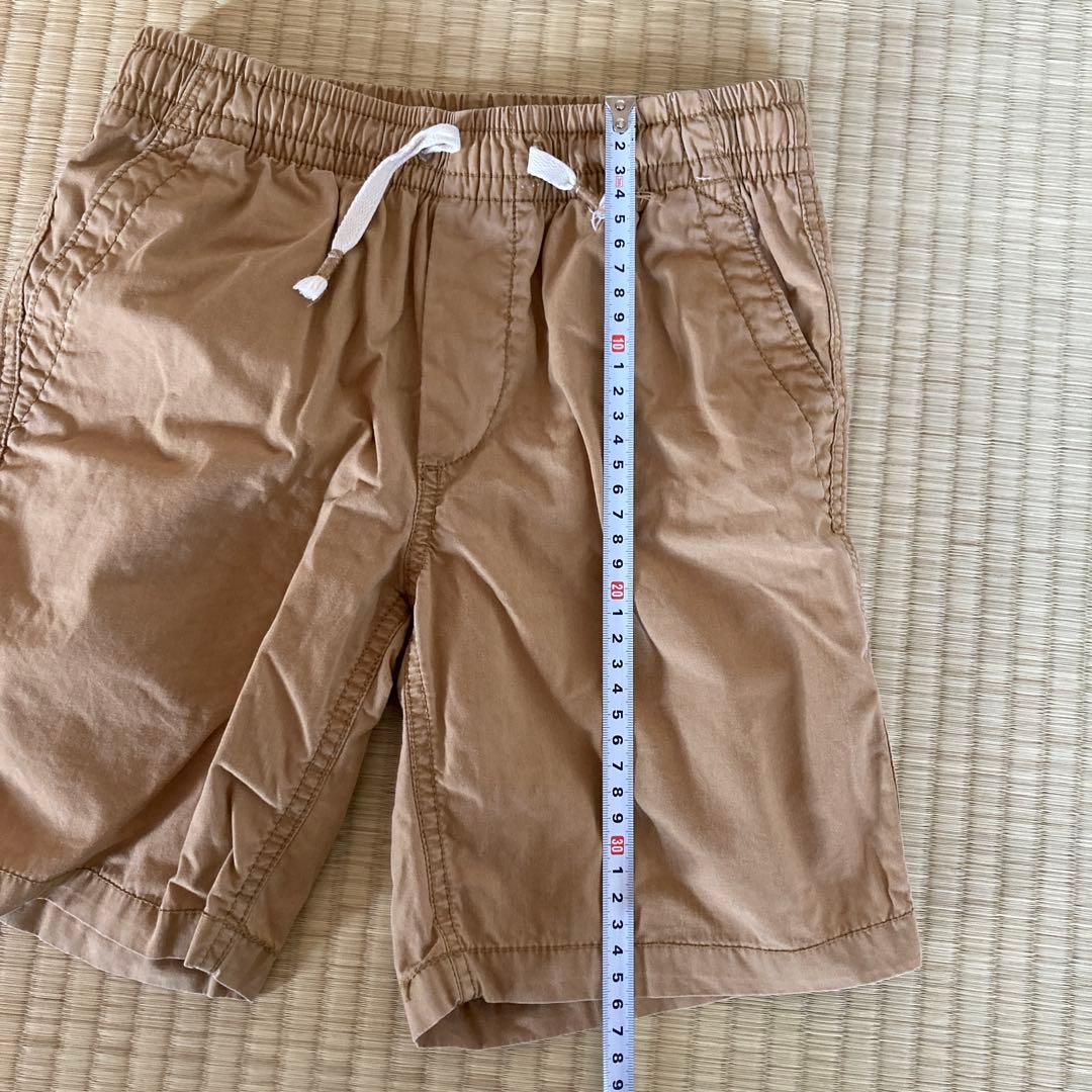 130cmサイズのベージュのコットン半ズボン、ウエストゴムとドローストリング付きで快適なフィット感。