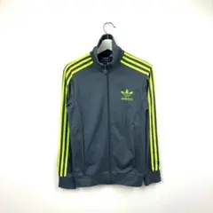 ★adidas★ アディダス トラックジャケット ファイヤーバード ジャージ トレフォイルロゴ イエローライン 3ストライプ グレー 蛍光イエロー 刺繍