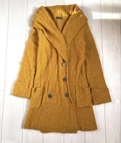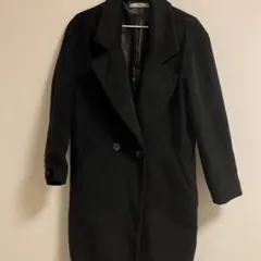シンプルなデザインのグレーのロングコート、ポケット付きでスリットあり。
