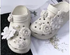 クロックス サンダル ジビッツ 飾り 花 パール ベージュ 14ピース