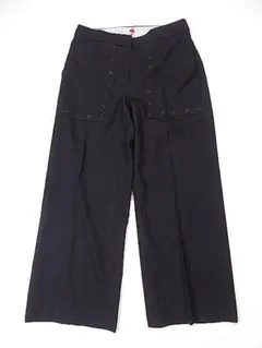 ブルックスブラザーズの総織柄(ジャカード織り?)のエレガントなスラックスです。お色はブラックです。(写真では部分的にボルドーっぽく写っているのですが、これはカメラの不具合で、日光の具合によって光が赤っぽく写ってしまいます。)全体的にお花や植物の柄が織り出されていて、とても素敵です。ウエスト部分の裏側もストライプ柄の生地が使われており、とてもお洒落な作りです。裏地はありません。さらっとした軽い生地ですので、真冬以外は気持ちよく着用できそうです。