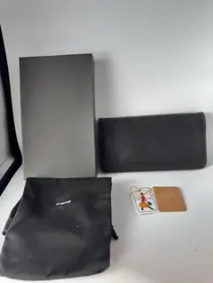ナイロン製のブラック長財布、ファスナー付きポケットが便利。