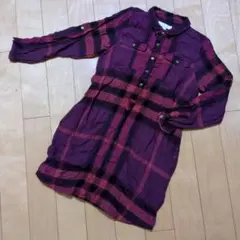 BURBERRYのチェック柄長袖ワンピース、サイズ4Y/102cm。
