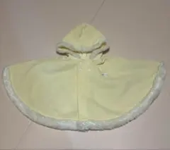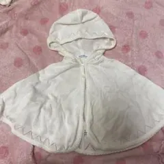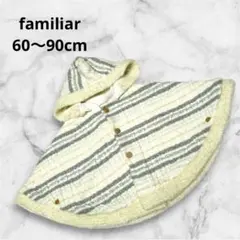 柔らかいフリース素材でファミリアらしい水色ポンチョ、ボタンとポケット付きで実用的でかわいいです。