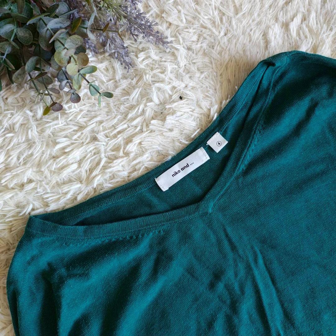 【ニコアンド】ニット/ダークグリーン/L/七分袖/春秋/シンプル/オフィス