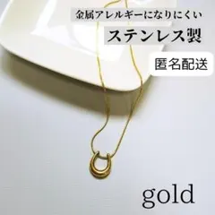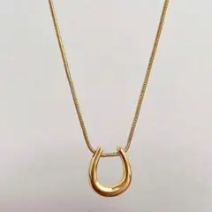 馬蹄型のゴールドのネックレス、カジュアルスタイルに最適。