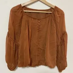 ブラウン(オレンジに近い)五分袖 シャツ ボタン付き Mサイズ