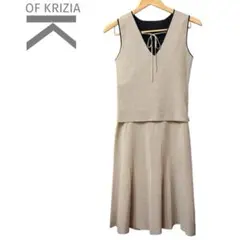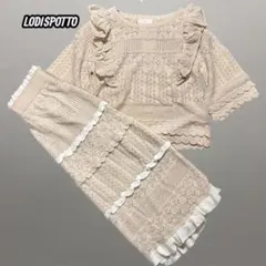 ベルト付きのニットスカートセットアップ、Vネックカーディガン付き。