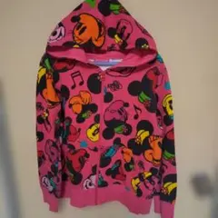 ミッキーマウスが特徴のグレーのパーカー。