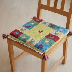 アマレ族の伝統技法で丹念に織り上げられた手織りギャッベ、サイズは75×52cm。遊牧民の暮らしから生まれた素朴な文様は、鹿や幾何学模様を組み合わせた温かみのあるデザインが特徴です。天然ウールならではの柔らかい質感と高い耐久性を持ち、年月とともにより味わい深い風合いに変化していきます。