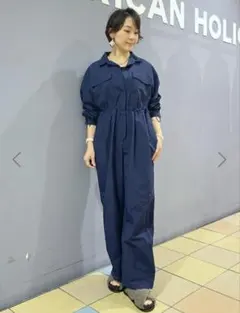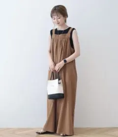 【アメリカンホリック】サロペットスカート S 前スリット ナチュラル 綿100%