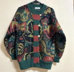 ★古着★メンズ★ラグラン★カーディガン★サイズL 緑グリーン