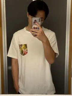 【訳アリ】BEAMS HEART 半袖シャツ L ホワイト/ブルー
