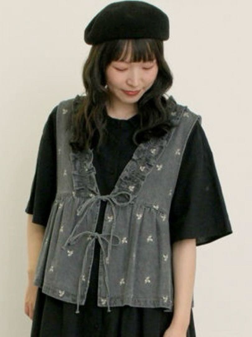 サマンサモスモス 刺繍デニムベスト