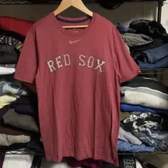 鮮やかな赤色にNIKEのグラフィックプリントが施されたTシャツ