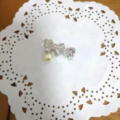 新品 未使用 リボン ブローチ パール フォーマル 小物 シルバー 冠婚葬祭
