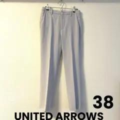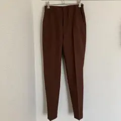 ドット柄のベージュスラックス、ボタン付きデザイン。