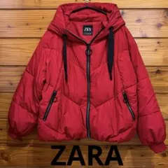 ZARAフード付ダウンジャケット、茶色の縁取りが特徴。