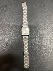 G-SHOCKのデジタル腕時計、ブラックとレッドの配色で、ステンレススチールバンドを採用。