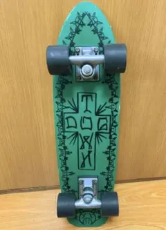 ピンクのプラスチックデッキとクリーム色のホイールを持つスケートボード。