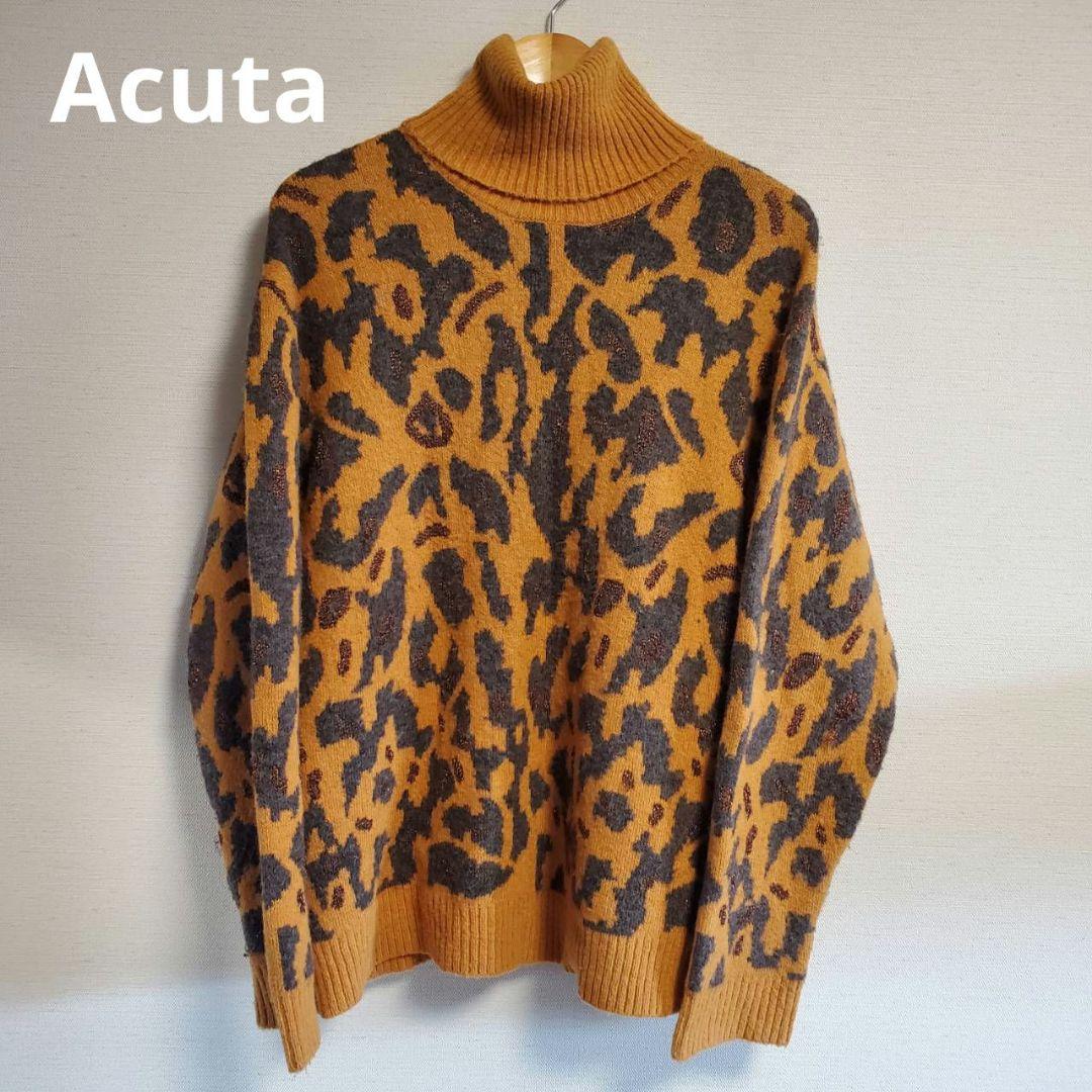 アクータ Acuta ニット セーター ヒョウ柄 タートルネック ラメ 長袖 F