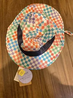【新品未使用】CHANCOOKストライプ柄象刺繍ハット日除けあご紐付き54センチ