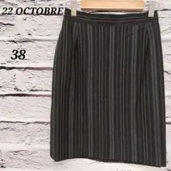 ヴァンドゥーオクトーブル ジャガードスカート 38 紺色 大人 膝丈 おしゃれ