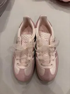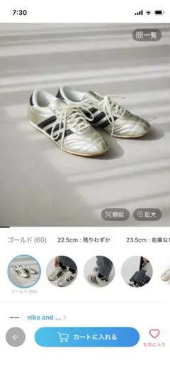 真っ白なGAZELLEをベースにゴールドのロゴマークと靴ひもチップ、そしてヒール部分にヘアリーレザーを使用しています。パンツのスソからチラッと見えるヘアリーレザーがオシャレ♪