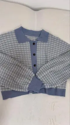 153センチで、ニットはおへそより10cmほど下の長さです。カーディガンはおへそより15cmほど下の長さになります。