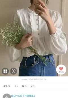 肩落ちのラインや、シャーリングデザインの程よいボリュームの袖などは