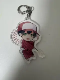 カラフルなデザインのアクリルキーホルダー、竹とウサギの裏面付き。