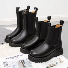 サイドゴアブーツ 24.5 黒 秋冬 長靴にも レディース
