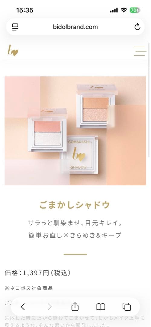 コンパクトサイズのアイシャドウ、GOMAKASHI SHADOW。