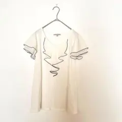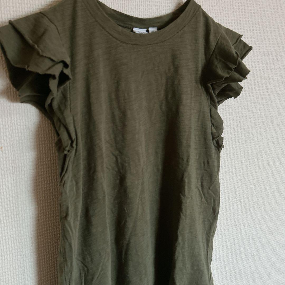 オリーブカラーのフリル袖Tシャツ、GAPのXSサイズです。